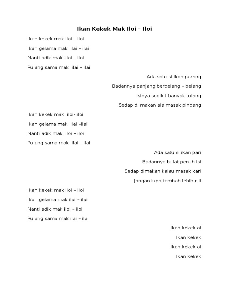 Ikan kekek mak iloi iloi Cinta harus berterus terang Takut makin hilang Ikan gelama mak ilai ilai Ikut mat jenin besok di tangkap orang. Lagu yang dipilih untuk tugasan ini. Watch popular content from the following creators.
